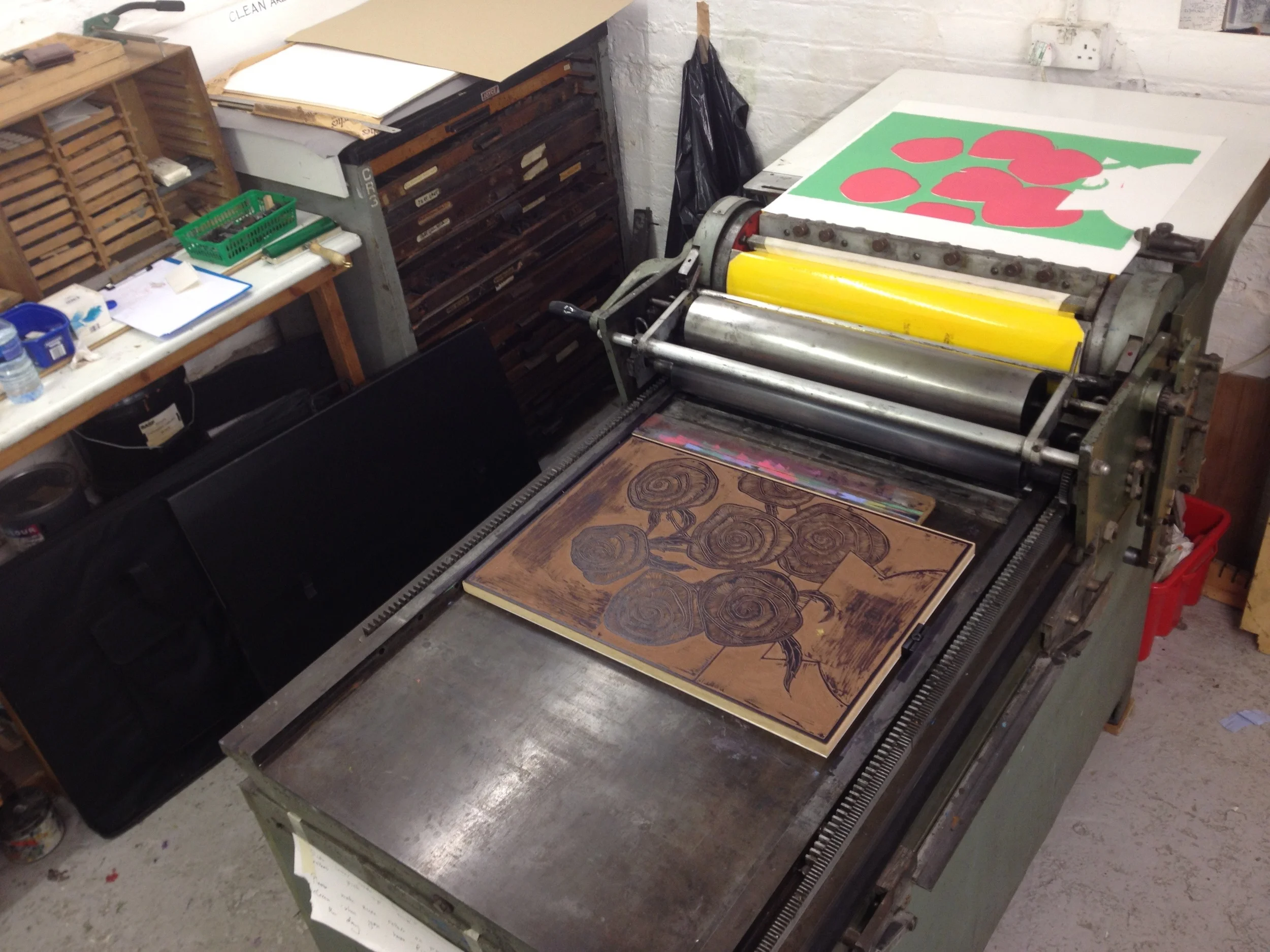 The carving of the Lino plates took over a week and the work and effort was painstaking given the large scale of the pieces. I couldn't wait to get into the Printmaking studio to see if my design was to be a success or not.